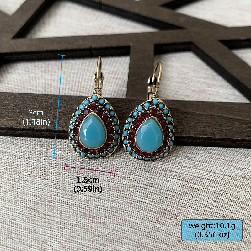 Classic Teardrop Resin Earrings for Women, Vintage Artificial Turquoise Rhinestone Hook Earrings, Gift for Loved Ones and Friends, Birthday Party Gift